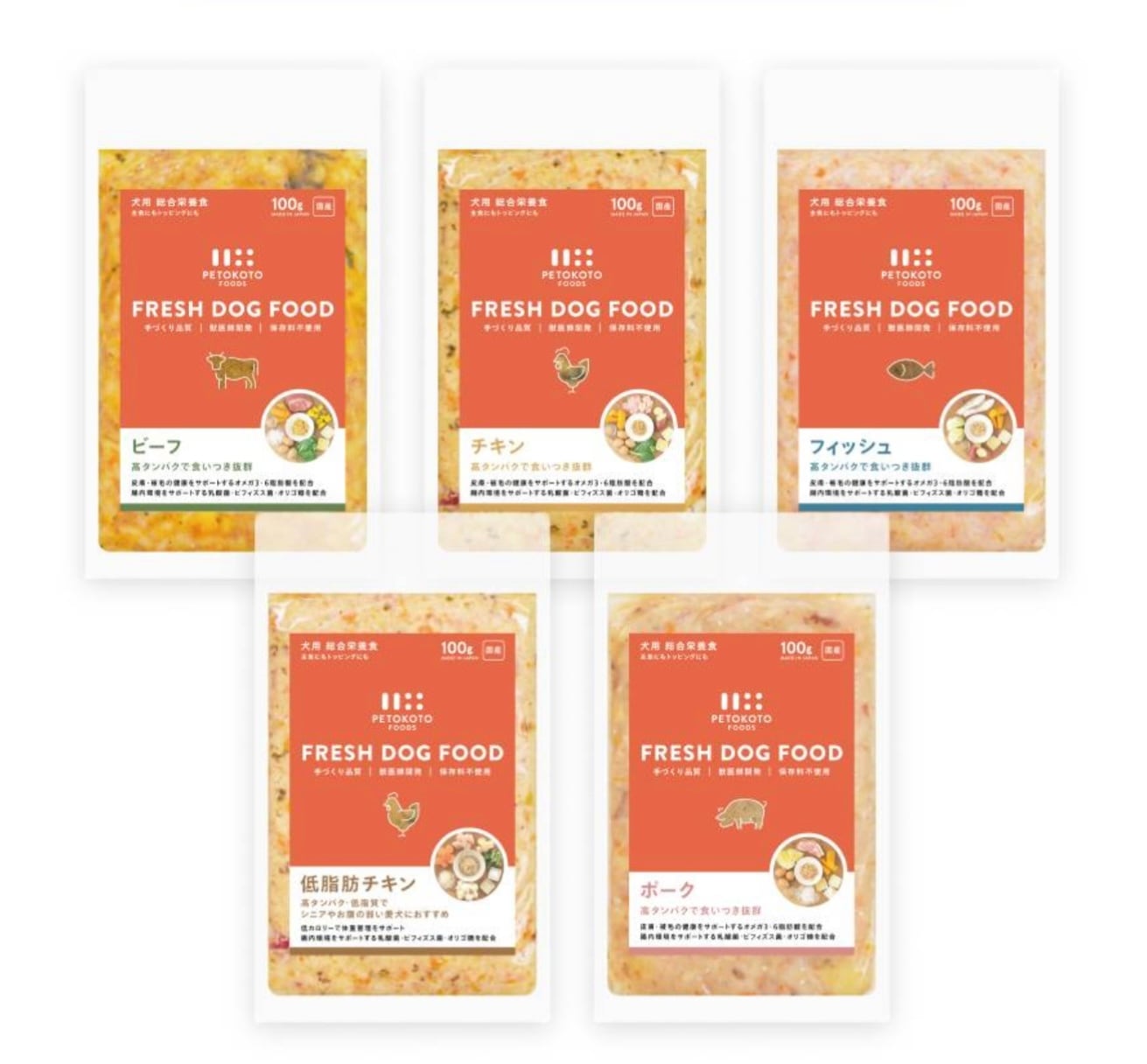 人間用食材と同品質の国産食材を使用し、獣医師監修のもと開発された、常温保存可能な総合栄養食ドッグフードです。チキン、ビーフ、ポーク、フィッシュなどの豊富なラインナップがあり、グレインフリー・グルテンフリーで、食いつきが良く、水分補給や食欲がない子にもおすすめ、添加物不使用で安心して与えられます。